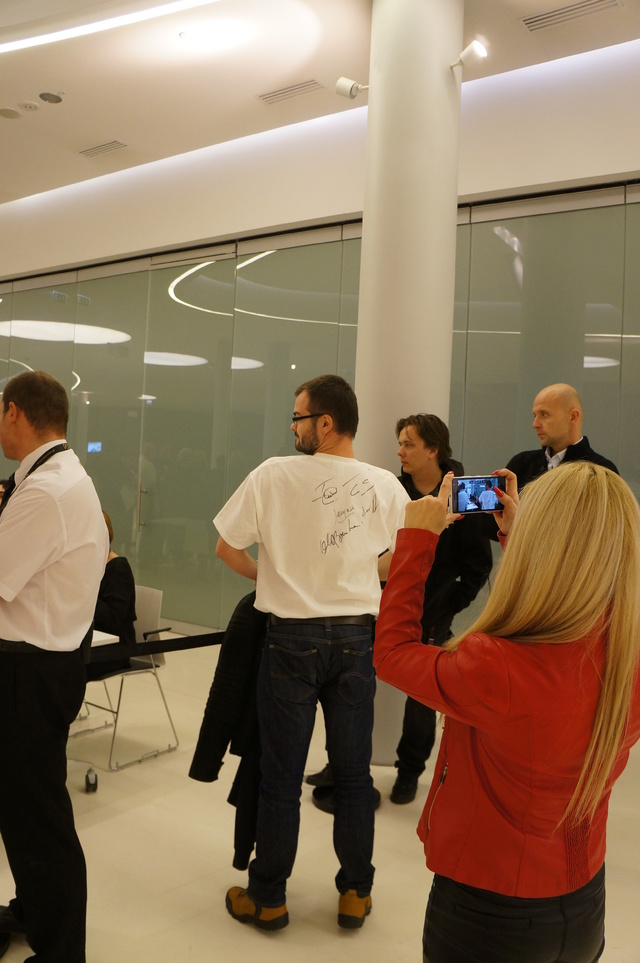 Окончание концерта. Музыканты раздают автографы в фойе.