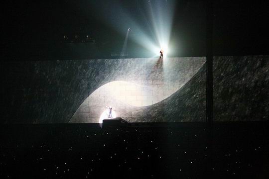 Неоспоримая жемчужина шоу, море рук, люди в голос поют, сидеть-молчать-быть неподвижным невозможно, зал встает абсолютно весь, слезы снова у самого края. Робби великолепен. Роджер вздымает руки к свету и кажется, поднимает с собой весь зал вверх. С появлением Килминстера небо разверзается, лучше быть просто не может. Невероятно красиво, просто непередаваемо. Первый раз перехватило дыхание.