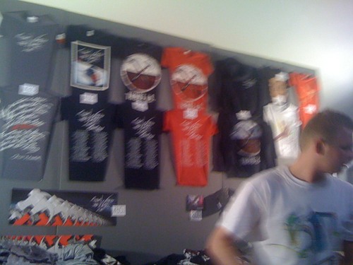 Публика на концерте несколько отличалась от привычного контингента поклонников Уотерса в России. Намного больше было женщин, причем женщин самых разных возрастов. Очень много людей во флойдовских футболках, многие уже в свежеприобретенных. Возле мерчендайзинга была такая толкучка, что я даже не смогла толком сфотографировать, а уж рассмотреть ассортимент тем более.
