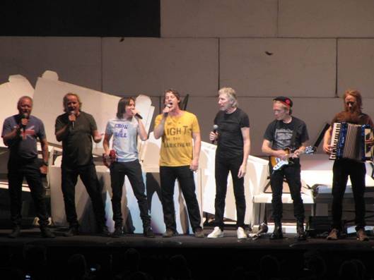 Было забавно, когда Роджер сказал «Добрый вечер!» по-английски, а потом извинился, что хотел поприветствовать публику по-шведски, но не смог запомнить, как правильно произнести («God kväll»). А еще Роджер раз десять подряд произнес слово «very», говоря о том, как давно было оригинальное представление “The Wall”. Еще кто-то громко крикнул что-то из-зала, Роджер улыбнулся, ответил, но я не разобрал что.