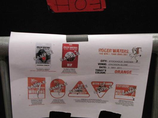 Наконец, решаю зайти внутрь, на входе контролер смотрит на мой фотоаппарат и говорит, что он слишком большой. Я им отвечаю, что еще вчера все было в порядке, и я без проблем с ним прошел на концерт. Они окликают проходящего мимо сотрудника службы безопасности, и тот, увидев мою технику, сказал, что можно проходить с такой свободно. Меня пропустили, и я пошел к столикам с атрибутикой, купил пару значков для друзей, а потом увидел другой столик, где продавались плакаты и брелочки в форме кирпичиков с надписью «Big Mother is watching You» (я купил один такой). Хотел еще купить альбом Гарри Уотерса, но крон не хватило, а евро не принимали. Предложили оплатить карточкой, но у меня ее с собой не было.