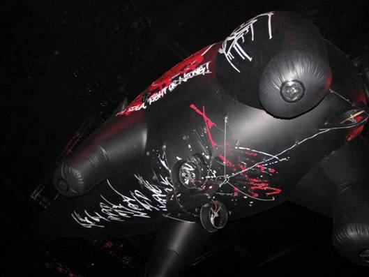 Во время этого концерта я впервые оказался прямо под свиньей, и запечатлел ее движители. Она была очень близко, слышно было гудение пропеллеров и моторов. И я сфотографировал ее со вспышкой (прости меня, Роджер). А в это время Роджер расстреливал всех направо и налево.