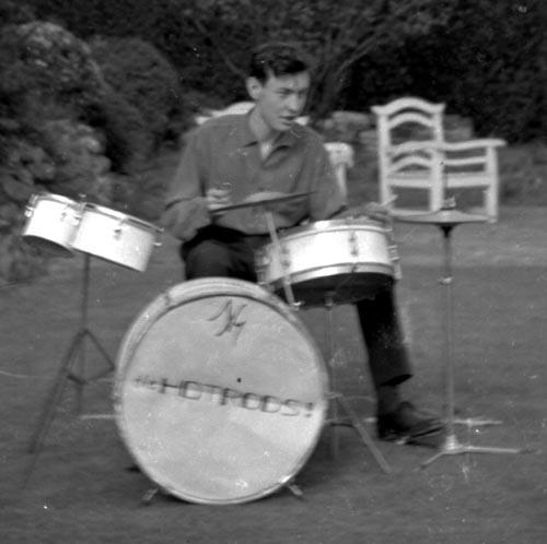 My Hotrod days with my first white drum kit purchased from Chas. E. Foote of Denham Street in Soho,1959 ©Nick Mason