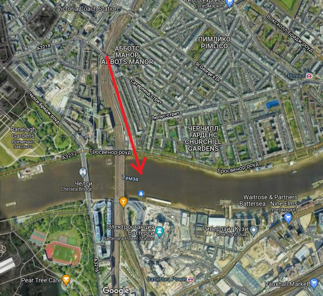 примерно из этой точки - 51.49020590566223, -0.14868957841304004 - на Ebury Bridge