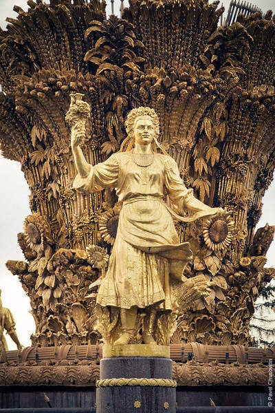 Знаменитый фонтан "Дружба народов" на ВДНХ в Москве изначально назывался "Золотой сноп".