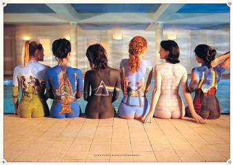 Если кто не знает, бодиарт-шоу основано на известном плакате Сторма Торгенсона, который изобразил 6 обложек Pink Floyd на спинах девушек. Нам нужно по возможности больше девушек и больше альбомов.