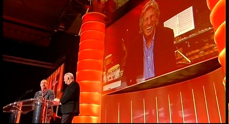Это ж прямо-таки мизансцена на вступлении в зал славы рок'н'ролла! 17.11.2005: Родж - на экране, Дейв и Ник - вокруг микрофона.