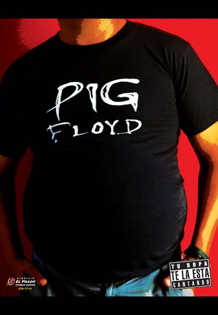 На принтах для фитнес-клуба Gimnasio el Prado внушительных размеров животы обтянуты футболками с надписями, имитриующими названия известных музыкальных групп. При внимательном прочтении Gorillaz становится Gordillaz, Oasis – Obesis, Pink Floyd - Pig Floyd, Rolling stones - Rolling estoy. Все выражения на смеси испанского и английского вопиют об ожирении. Разумеется, прием с «коверканьем» названий рок-групп, примененный рекламным агентством Zeus Publicidad (Гондурас), далеко не нов и в данном случае несколько притянут за уши, тем не менее хотя бы улыбки принты заслуживают.