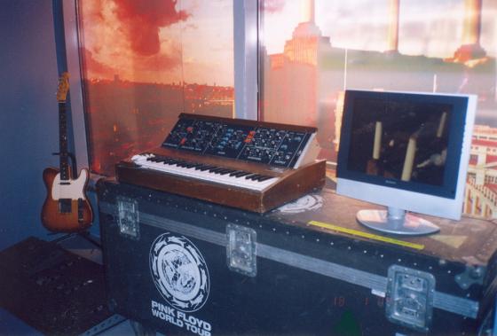 Синтезатор и гитара на ящике тура In the Flesh 1977