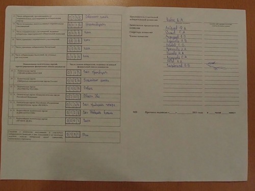 апдейт2. Добавил пару фоток. Написал заявления в ЦИК и в прокуратуру на отмену итогов и возбуждение дела против Колбаса. Прошу откликнутся всех наблюдателей по участку №6 и членов комиссии, кто присутствовал при подсчете голосов и подведении итогов. Хочу заручившись вашей поддержкой подать заявление против главной преступницы Вялых И.М. о фальсификации протоколов. Особенно прошу откликнутся наблюдателей от Единой России (нормальный парень был) и КПРФ (милая девушка).