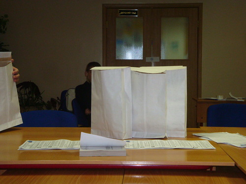 После моих настойчивых расспросов о том откуда эти люди и почему их сюда привезли, кто оплачивал это (оплата проезда или аренда автобуса из фондов любой партии было бы нарушением) и т.д. она сказала что у них в компании 40 монтажников хотели проголосовать по открепительным у нас, поулыбалась и исчезла. Впрочем замечу, что поток открепительных удостоверений иссяк и стало больше приходить местных жителей. Временами даже были маленькие очереди.