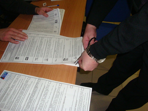 Мы слегка в цейтноте и я дружелюбно поторапливаю комиссию успеть сделать все до открытия участка (8:00). У меня в руках пошаговая памятка от Хелен Хант, а они вообще не помнят, что им делать. Гасим неиспользованные открепительные, актируем, сразу вносим эти данные в увеличенную копию итогового протокола (для тех кто не в курсе такая увеличенная копия висит в каждом участке и заполняется по мере поступления данных так что все могут видеть что там) осматриваем и пломбируем урны (стационарные и переносные). Пока осматриваем списки избирателей и бюллетени уже подтягиваются первые избиратели с открепительными, а мы еще не открылись. Я немного нервничаю и указываю на недороботки комиссии. Неоткрытие участка вовремя является нарушением, но жалобу составлять никто не стал, все видят, что люди работают и пытаются сделать как лучше.