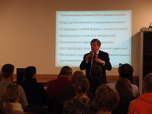 Итак где-то за месяц до выборов депутатов гос. думы 2011 в интернете мне попалась реклама Яблока "поучаствуй в контроле за выборами". Я из любопытства заполнил форму и вскоре пришло приглашение на семинар, где мне выдали много полезной информации и рассказали, что творится на выборах в РФ периода путинского правления. Посещая тренинг, я еще не был уверен, что реально хочу целый воскресный день провести на участке, занимаясь по сути низкоквалифицированной тяжелой физической работой. Однако, наслушавшись этих ужастиков и не вполне доверяя им, я в полной мере решил один день жизни посвятить этому увлекательному и познавательному мероприятию - контролировать важнейший из институтов демократии - выборы депутатов законодательного собрания РФ.