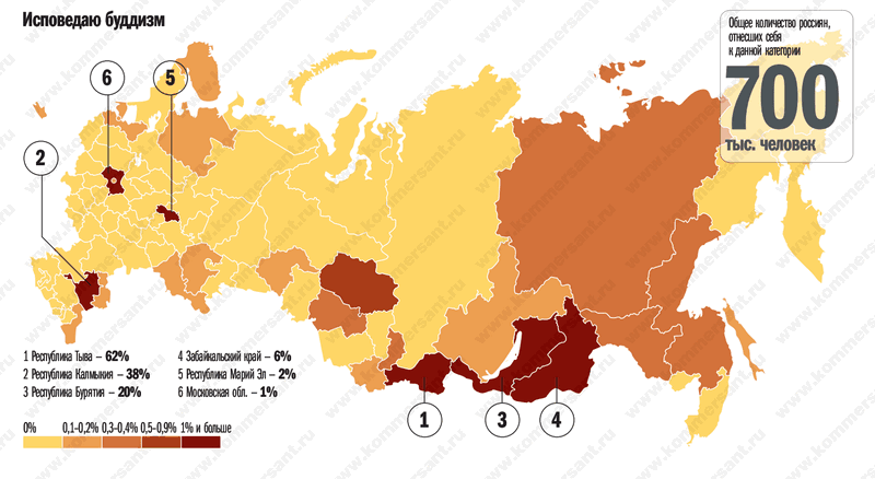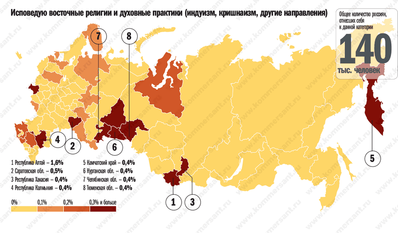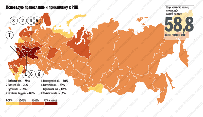 Социологи некоммерческой исследовательской службы «Среда» впервые составили Атлас религий России. На фоне дискуссии об отношениях с религией власти и общества он дает представление о том, во что и как верят россияне.