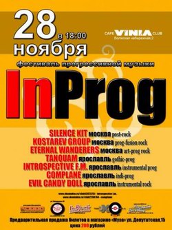 Фестивалю "ИнПрог" скоро исполнится 9 лет, но до поры до времени он базировался исключительно в Москве. 28 февраля 2010 года состоялась первая "выездная сессия" фестиваля в Ярославле, и реакция ярославских фэнов прогрессива показала, что у мероприятия есть будущее! Поэтому менее чем через год, 28 ноября, пройдет второй "ИнПрог в Ярославле". Организаторы, группа Introspective F.M. и магазин "Муза", снова собрали интереснейший состав, в котором и гости из Москвы, и звезды ярославской сцены.