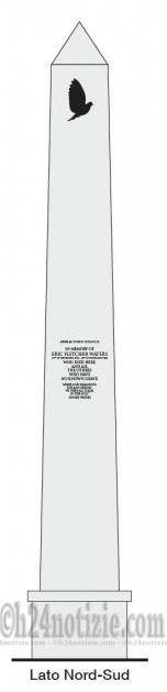Трехметровый мраморный монумент был разработан графической студией из итальянского города Асколи-Пичено (Ascoli Piceno). Надпись на памятнике гласит: «Светлая память Эрику Флетчеру Уотерсу, погибшему здесь, и всем остальным, покоящимся в безымянных могилах». За ней следует цитата из песни Two Suns in the Sunset: «Ashes and diamonds, foe and friend, we were all equal in the end».