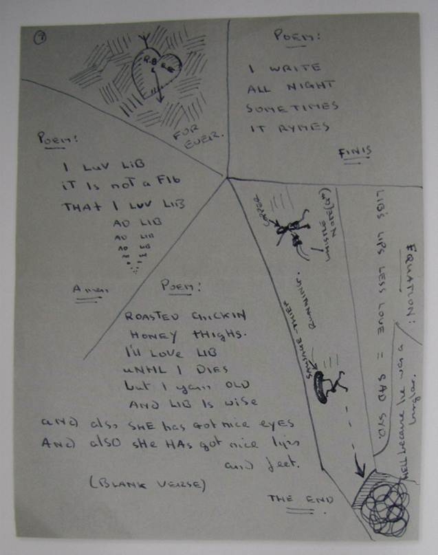 Letters – репродукции (28 иллюстраций) богато украшенных его рисунками писем Сида сестре, девушкам: Либби Госден (Libby Gausden, 1962-1964) и Дженни Спайрс (Jenny Spires, 1964-1965). В конце раздела можно увидеть стихотворение "Little Twig", которое он написал для Вив Бранс (Viv Brans), которая была его пассией летом 1965-го.