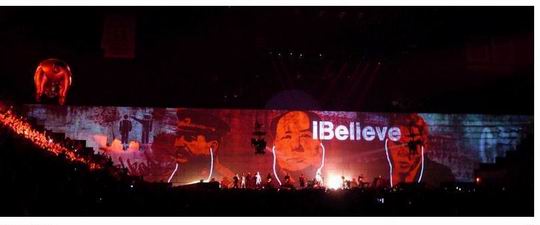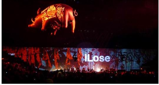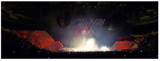 Зал снова на ногах, толпа активно манифестирует свою преданность скрещенными кулаками, автомат, и всех нас, чмошников так сказать, простите, наповал!)) Знамена срываются во тьму и это она!!! Run Like Hell! Самая отвязная песнь для всех параноиков, а их было, судя по всему полная аудитория до последнего! Остатки мозгов вылетели через пулеметные отверстия, и толпа отбивающих ладошки добровольно ушла в отрыв! На Арене, обнявшись, прыгали. Робби снова удивляет диапазоном и эмоциональной наполненностью исполнения. Вспышки проецируемых софитов на наци-сцене, музыка, ритм и единый порыв зала дает такой подъем, что хочется выпрыгивать из себя, но появляющиеся проекции сдерживают, заставляя задумываться. «Oн ничего плохого не сделал, но с утра за ним пришли. Должно быть, кто-то наврал.» ILead, IFollow, IResist, IProfit, ILose... You bettеr run!