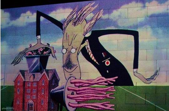 С первыми аккордами In the Flesh Pt 2 знамена с молотками молниеносно расправляются, на круглом экране те же молотки в ореоле лучей уже сияют. И мы готовы встретить другой крайний полюс личности Пинка Тьмы. Флаги, флаги, бесконечные ряды их, над стеной, на стене, в руках у черных пешек; уже знакомый манекен, а раз так пора бы уже появиться диктатору.