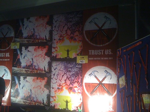 Публика на концерте несколько отличалась от привычного контингента поклонников Уотерса в России. Намного больше было женщин, причем женщин самых разных возрастов. Очень много людей во флойдовских футболках, многие уже в свежеприобретенных. Возле мерчендайзинга была такая толкучка, что я даже не смогла толком сфотографировать, а уж рассмотреть ассортимент тем более.