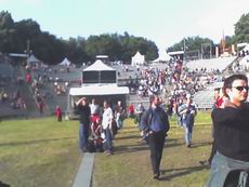 Я не рискнул взять с собой фотоаппарат, наверное, напрасно, так как вокруг меня народ усиленно снимал все на цифровые мыльницы. Но у одного человека под сценой все же конфисковали его полупрофессиональный агрегат с внушительной оптикой; он смог получить его только после концерта. Я же тщетно пытаюсь сфотографировать что-то телефоном.