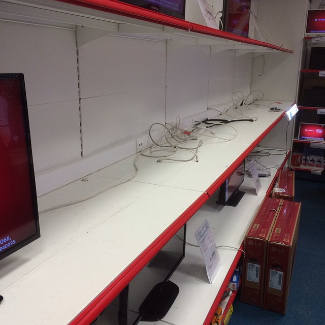 Что в одно место совсем недавно физически съехались три магазина, нет свободного доступа к товару, но есть магазин-аквариум в торговом центре забитый под потолок дисками и прилавок.