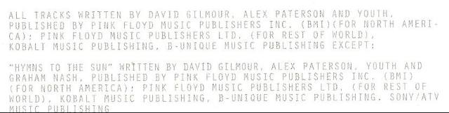 Гилморовские гитары действительно вписались очень здорово! Молодец, Дэвид - достойно наиграл за одну сессию. И вполне разнообразно. Профи - что тут скажешь! Что еще радует - фирменный почерк узнается сразу, а клише (которые, естественно, присутствуют) не мешают воспринимать материал в целом. В этом, считаю, еще и заслуга грамотного и деликатного микширования.