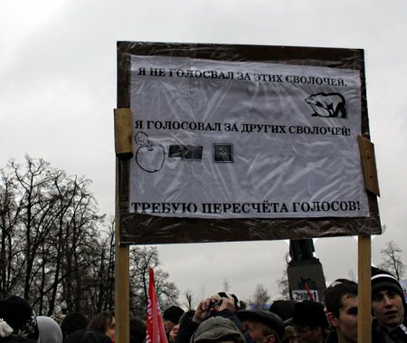 garry_s> На месте поднявших этот плакат я бы требовал не пересчёта голосов, а безусловного возвращения графы "Против всех".