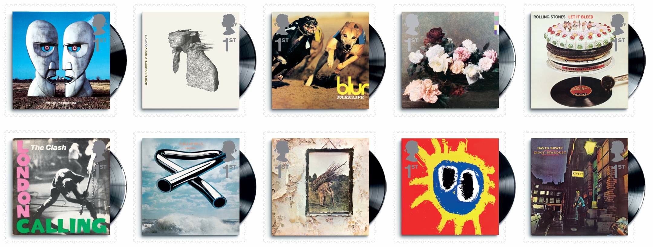 Британская Королевская Почта запустила серию почтовых марок с обложками лучших рок-альбомов за последние 40 лет, куда попал пинкфлойдовский... ни за что не догадаетесь: