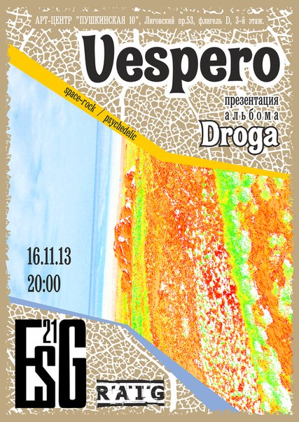 Chemic> Самыми любимыми из всего творчества Vespero пока остаются : "By The Waters Of Tomorrow" (2010) и "Droga" (2013).Стоит послушать не только "любителям ПФ",но и всем кто интересуется хорошей музыкой,без скидок на жанровые предпочтения.