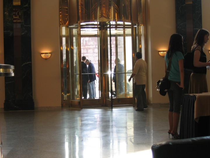 Роджер Уотерс раздает автографы у входа в отель (фото из холла). (фото by Arcady)