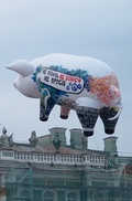 В середине концерта, на который, несмотря на дождь, собралось около 50 тысяч человек, Роджер Уотерс запустил над зрителями огромную надувную белую свинью символ группы, расписанную надписями на русском языке: "Атас", "За нашу и вашу свободу", "Не плачь, не бойся, не проси", "Наконец свободен", "Маруся".