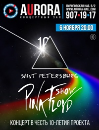 Концерт в честь 10-летия проекта состоится 6-го ноября, в концертном зале Аврора по адресу: Пироговская набережная 5/2. На шоу Saint Petersburg Pink Floyd непредвзятых слушателей ждёт, как всегда, потрясение светом, звуком, спецэффектами, детским хором, White Bricks, Fireworks, Big Pig & Mr.Screen.