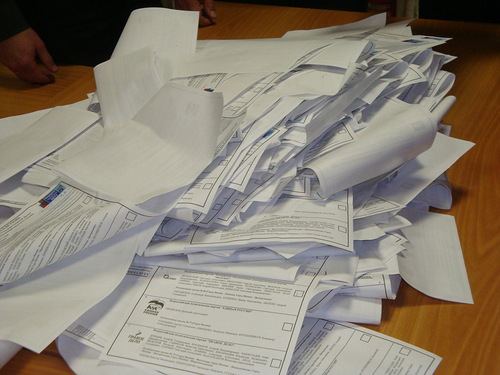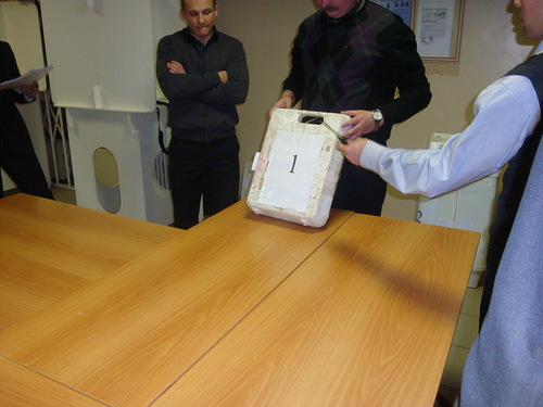 Мы слегка в цейтноте и я дружелюбно поторапливаю комиссию успеть сделать все до открытия участка (8:00). У меня в руках пошаговая памятка от Хелен Хант, а они вообще не помнят, что им делать. Гасим неиспользованные открепительные, актируем, сразу вносим эти данные в увеличенную копию итогового протокола (для тех кто не в курсе такая увеличенная копия висит в каждом участке и заполняется по мере поступления данных так что все могут видеть что там) осматриваем и пломбируем урны (стационарные и переносные). Пока осматриваем списки избирателей и бюллетени уже подтягиваются первые избиратели с открепительными, а мы еще не открылись. Я немного нервничаю и указываю на недороботки комиссии. Неоткрытие участка вовремя является нарушением, но жалобу составлять никто не стал, все видят, что люди работают и пытаются сделать как лучше.